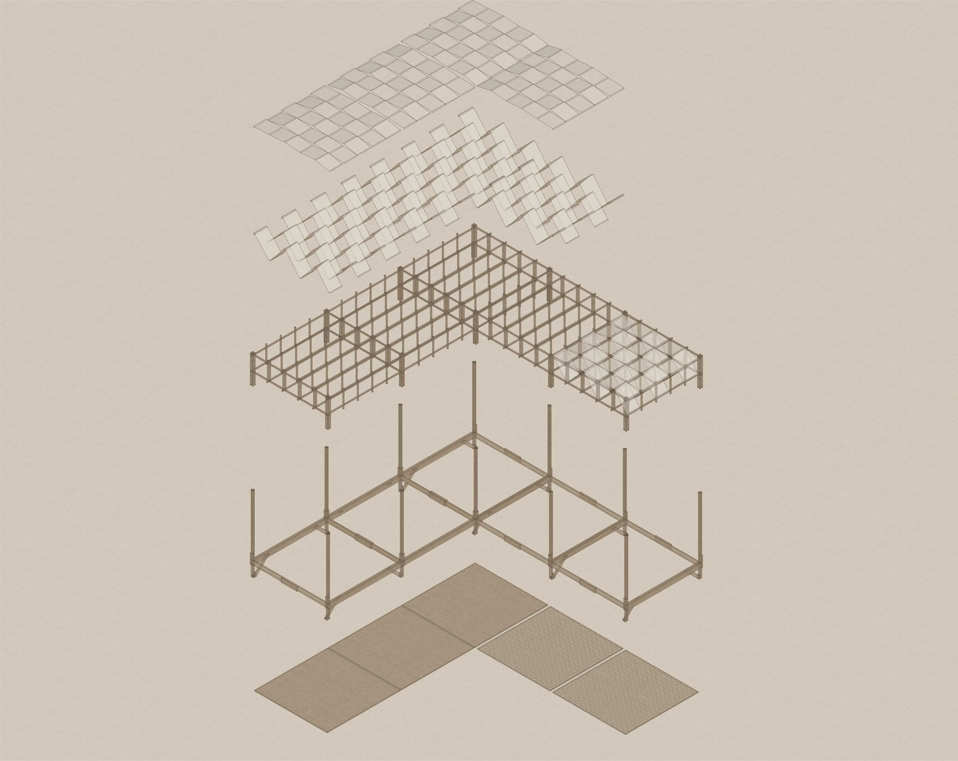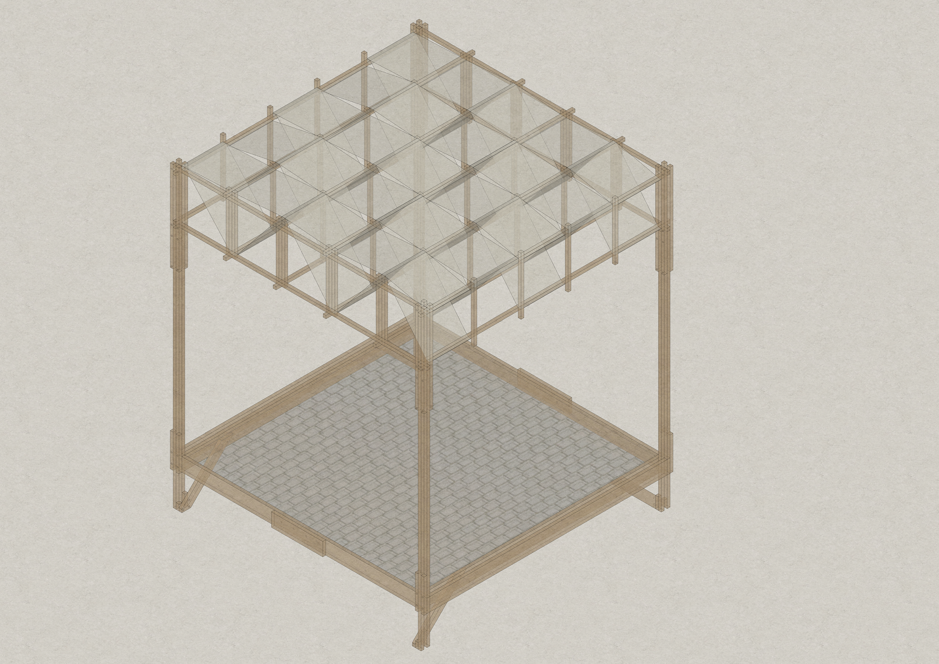 This project was a study of an existing student pavilion in Peru, originally built as a structure for appreciating archaeology. We analyzed the design, understood its construction logic, and then built a 1:1 scale model of a key construction detail using wooden slats and screws at the university.